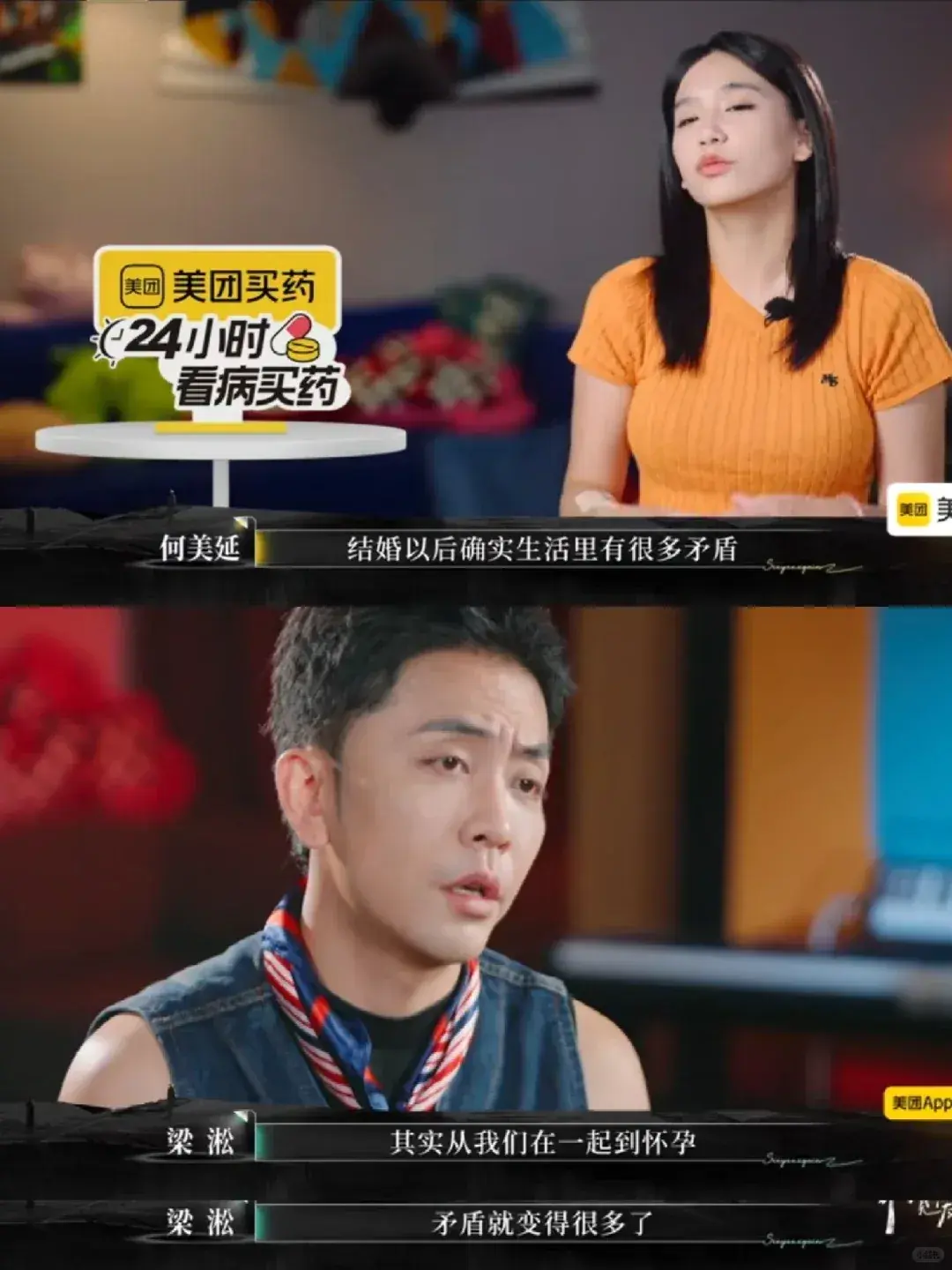 何美延提到嫁给梁淞后选择放弃事业,当家庭主妇,全心照顾三个孩子,她经历过产后抑郁,高度依赖丈夫的情感支持,最终却得不到满足。